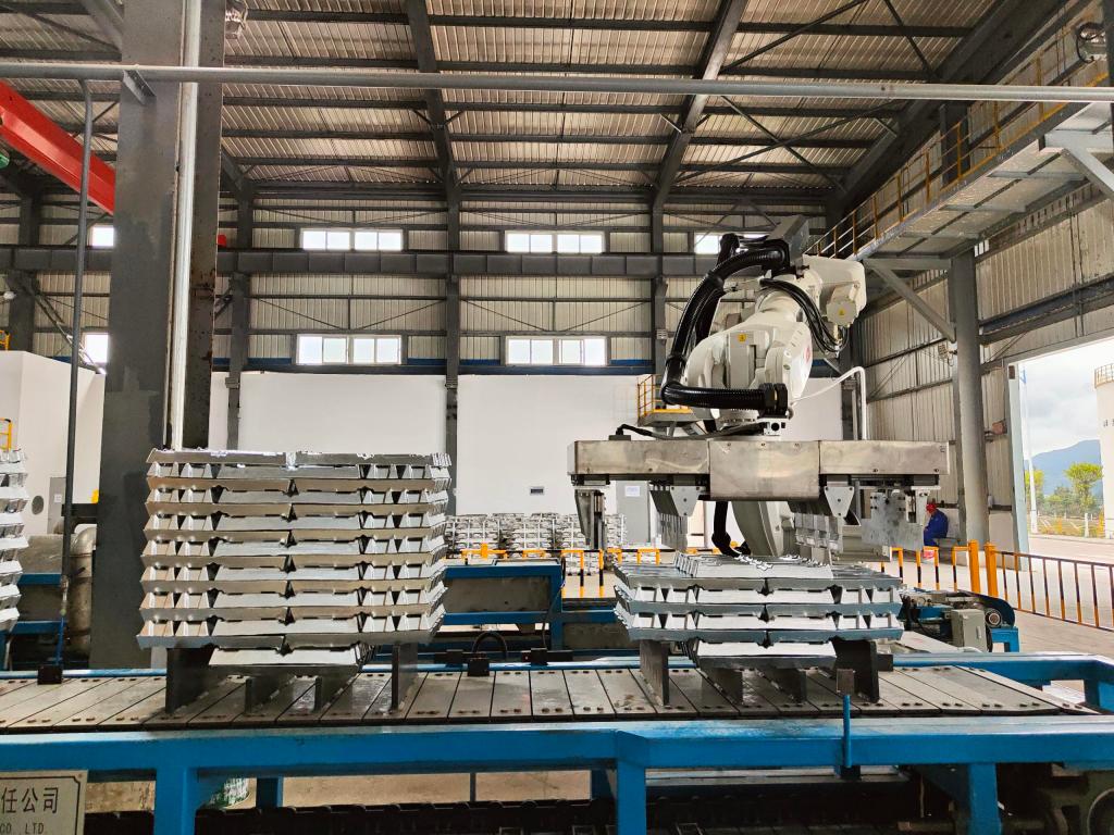 文山鋅銦年產(chǎn)3萬(wàn)噸壓鑄鋅合金項(xiàng)目是云錫文山片區(qū)兩公司“倍增翻番”計(jì)劃項(xiàng)目之一,也是文山州2022年“四個(gè)三十”重點(diǎn)建設(shè)項(xiàng)目之一,同時(shí)也是公司依托年產(chǎn)10萬(wàn)噸鋅冶煉熔鑄系統(tǒng)高效穩(wěn)定運(yùn)行基礎(chǔ)優(yōu)化升級(jí)實(shí)施項(xiàng)目,采用先進(jìn)、環(huán)保、節(jié)能的合金工藝和設(shè)備,主體設(shè)備選用“有芯感應(yīng)爐+可傾有芯感應(yīng)爐+電阻保溫爐”,配套液壓升降式加料裝置,合金爐自帶稱重保障精準(zhǔn)配料,探針聯(lián)鎖穩(wěn)定控制出液流量,機(jī)器人高效自動(dòng)扒皮,風(fēng)冷搭配均水噴淋,激光打碼自動(dòng)碼垛、打包、稱重、貼簽,全流程自動(dòng)化高,控制精準(zhǔn),操作規(guī)范,精選99.996%以上鋅片搭配99.85%重熔鋁錠和99.95B鎂錠作為合金錠生產(chǎn)原料,與現(xiàn)有工藝實(shí)現(xiàn)閉環(huán),形成了一套完整的環(huán)保、低耗、資源綜合利用的冶煉產(chǎn)業(yè)鏈體系。該項(xiàng)目于2022年8月8日開(kāi)工,10月9日點(diǎn)火烘爐,10月27日投料一次性產(chǎn)出合格產(chǎn)品,其產(chǎn)品表面光滑平整、斷面晶粒均勻、金屬質(zhì)感強(qiáng)、錠垛規(guī)整,物規(guī)質(zhì)量、化學(xué)成分穩(wěn)定,各項(xiàng)指標(biāo)明顯優(yōu)于國(guó)標(biāo)。