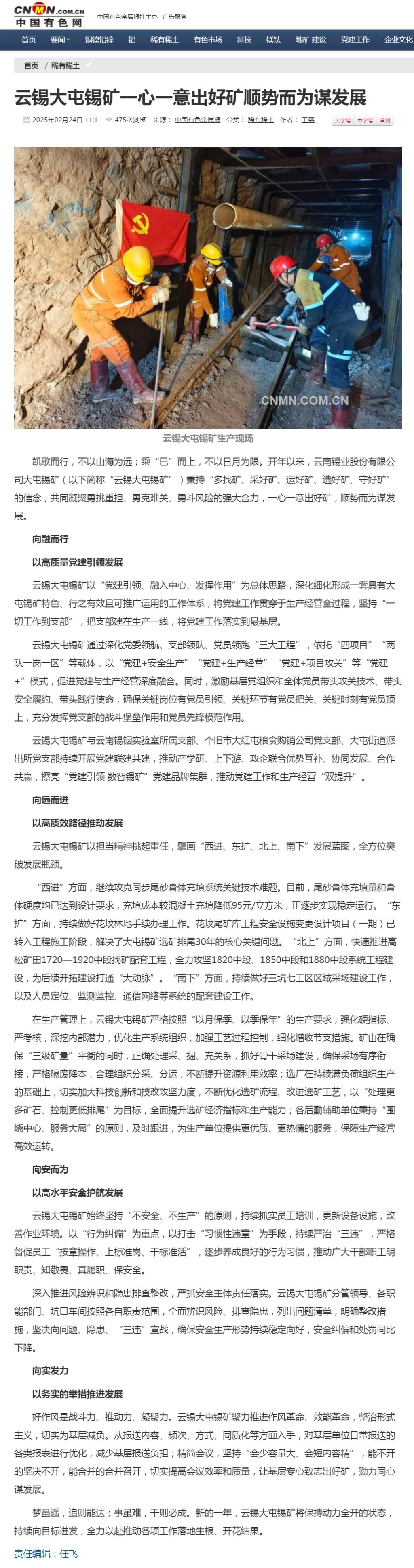 中國有色網:大屯錫礦一心一意出好礦 順勢而為謀發展