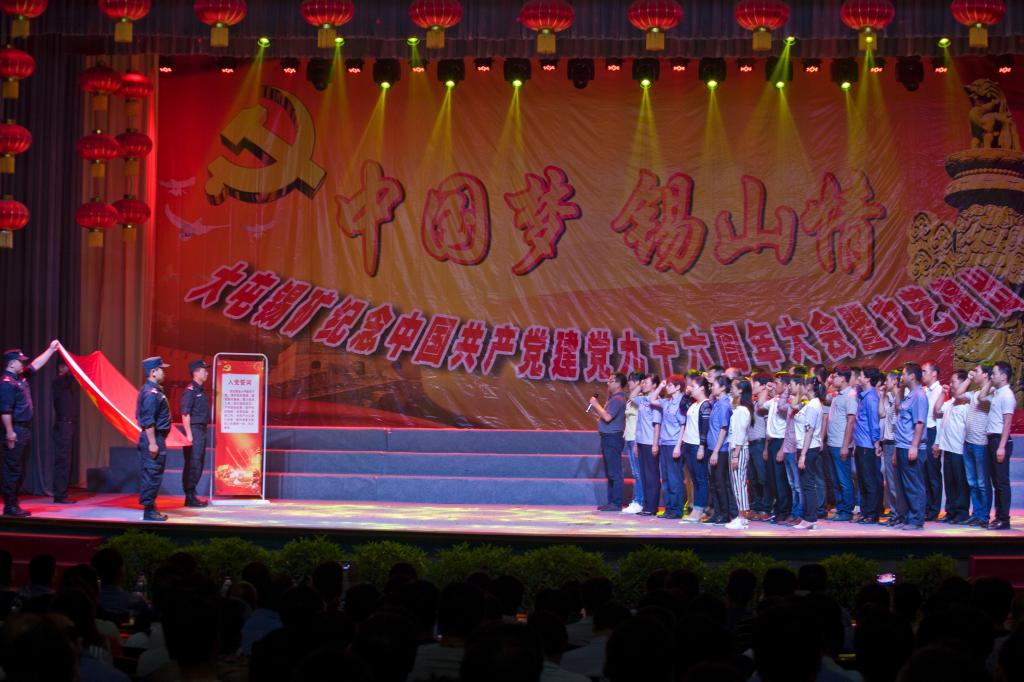 6月30日,大屯錫礦在官家山禮堂舉行及中國共產黨建黨96周年慶祝大會暨“中國夢·錫山情”文藝演出。大屯錫礦在家礦領導、各黨總支、直屬黨支部,職工家屬等500多人參加了大會。