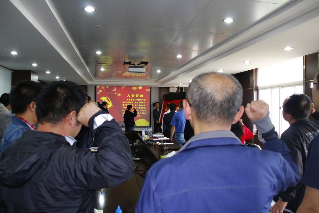 在黨課開始前,錫材公司6名新黨員面對黨旗莊嚴宣誓,與會的40多名老黨員一起重溫入黨誓詞,進一步增強黨員意識,牢記黨員使命。