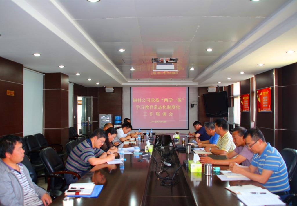 6月7日,錫材公司黨委召開“兩學一做”學習教育常態化制度化工作座談會。黨委委員、黨委副書記李樹祥主持會議。