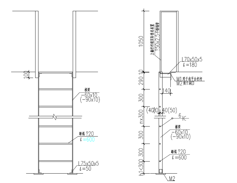 永久性安裝在建筑物或設(shè)備上,與水平面呈 75°~90°傾角主要構(gòu)件為鋼材制造的直梯(見圖1)。